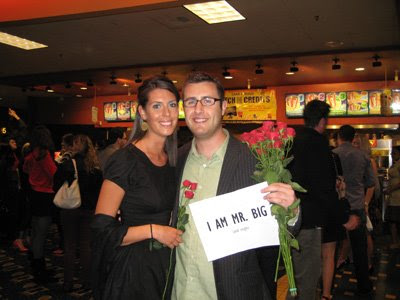 Knowing the audience would consist of mostly single, stylish 20-somethings, I put on a jacket, bought some roses and printed a sign that said: "I am Mr. Big (and single)".