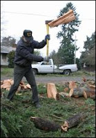 And now we're in the clean-up stages. According to the P-I, "whether the tree or the splintered limb that crashed into your house belongs to you, your neighbor or the city, experts say you're still responsible for the damage." That's why Scott has been spending the past couple days sawing up a tree that fell on his neighbor's property at his family's beach house.