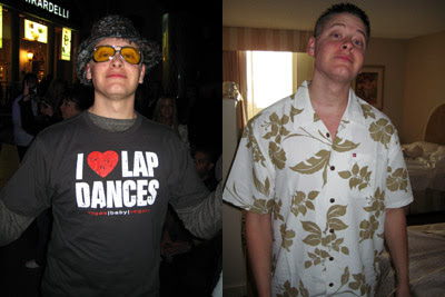 - Scott's "I Heart Lap Dances" shirt (with Elvis shades) and Hawaiian shirt.